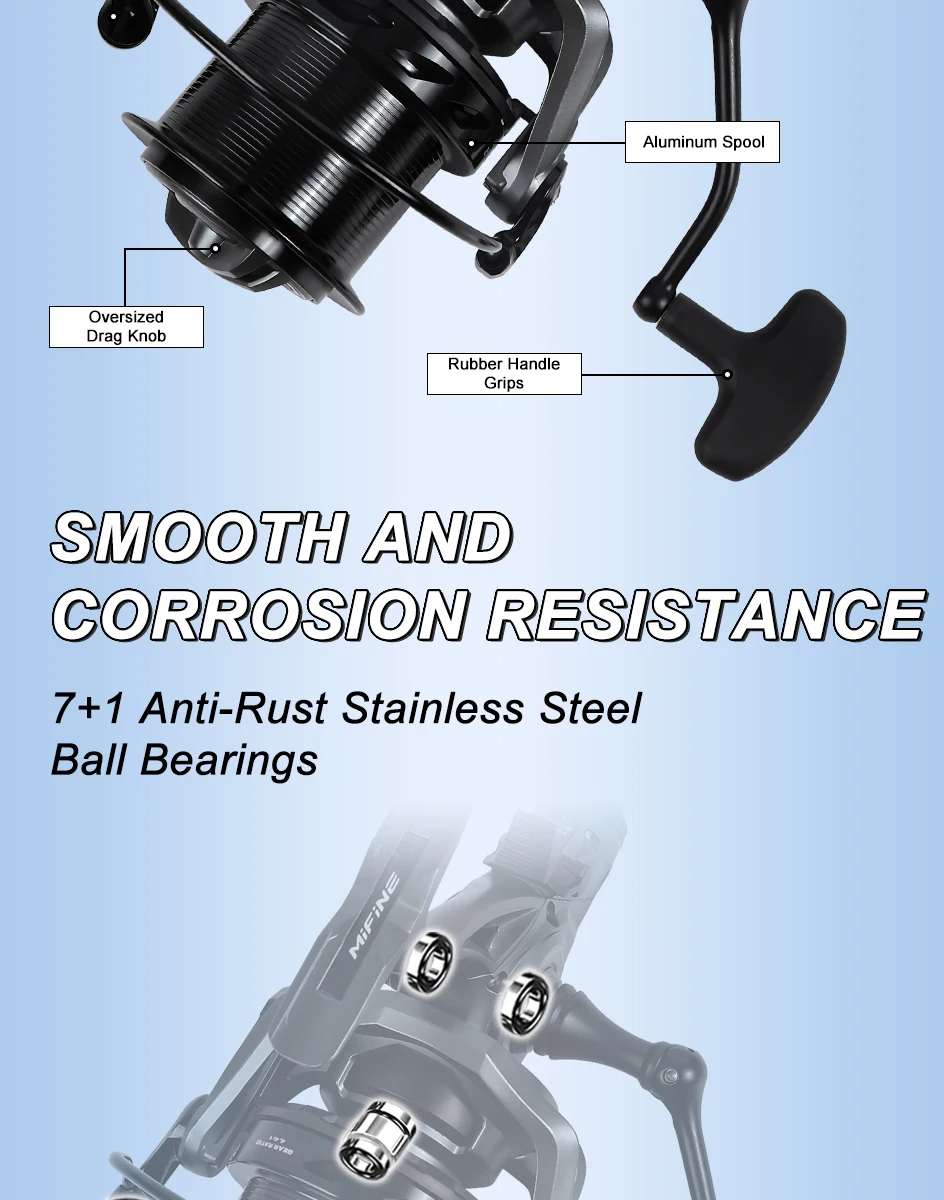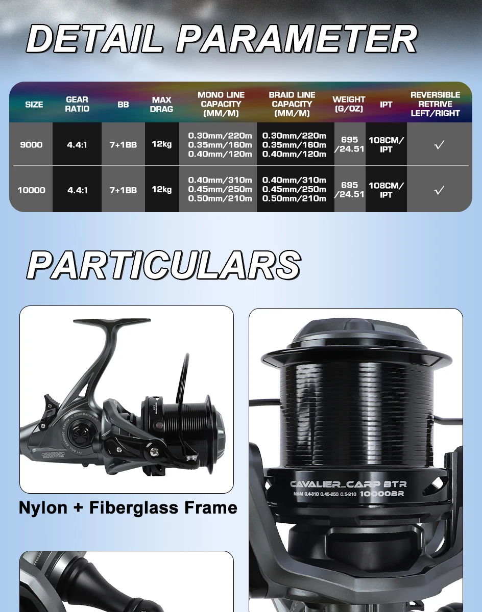 Mifine CAVALIER CAPR BTR Fishing Reels 4.4:1 Max Drag 12KG 7+1BB Size 9000