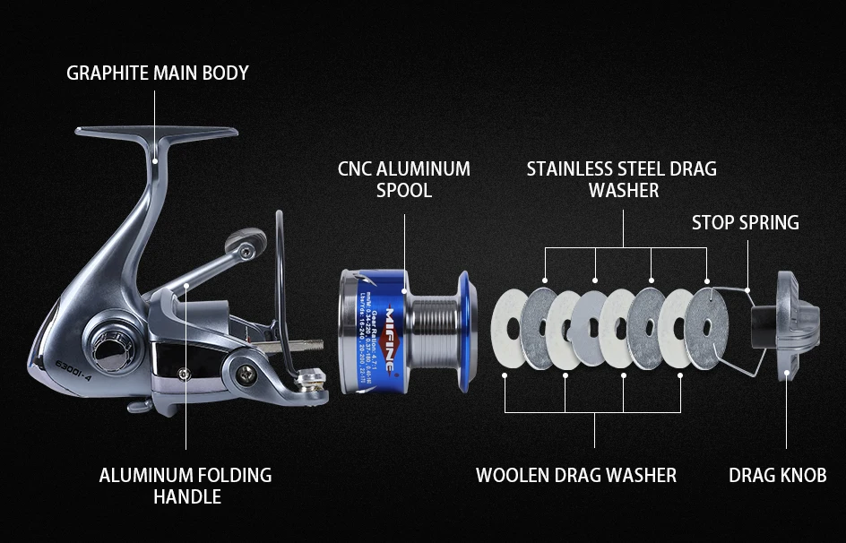 ● Stylish Design – Design appearance with high-strength two-colour aluminium spool. MIFINE also prepared a free spare spool for extra needs. Feel free to take it to the ocean, lake, stream, reservoir, pond or river.