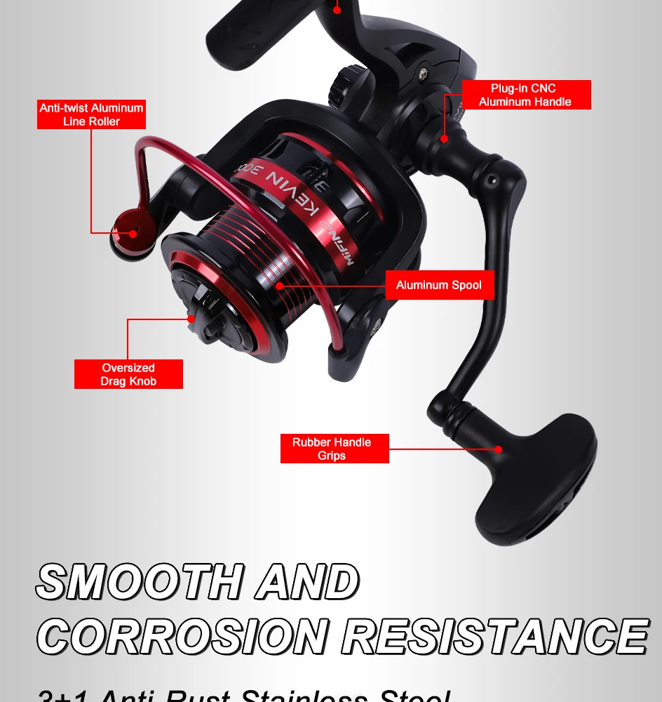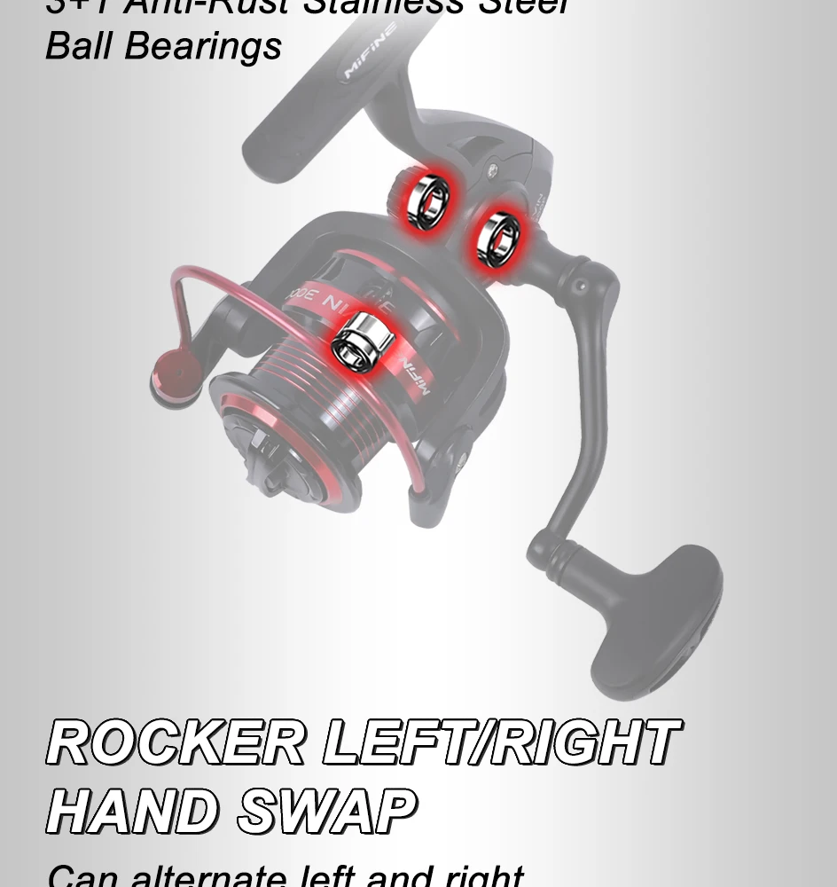 MIFINE KEVIN Ultralight Fishing Reel 1000-6000 Series 3+1BB,5.2:1,Max Drag 10KG
