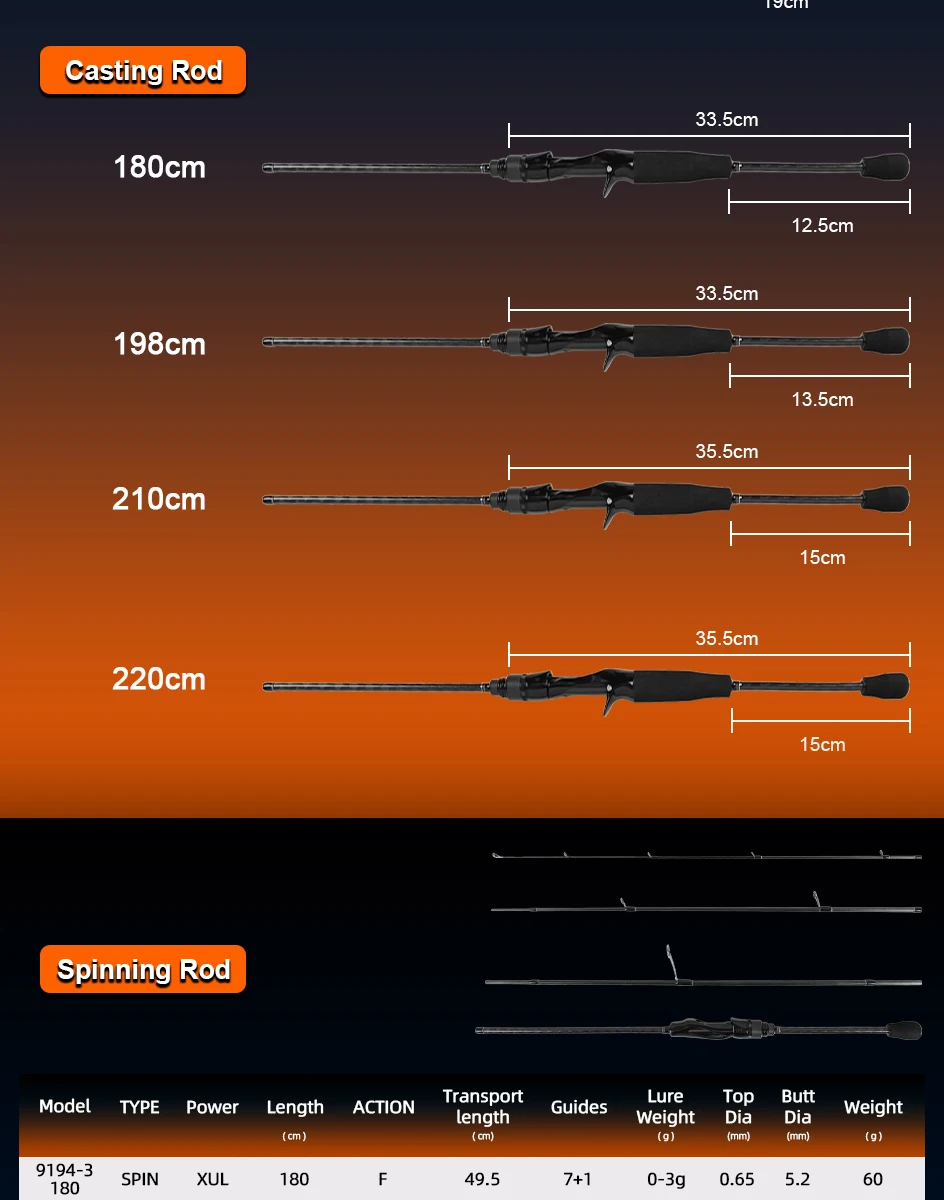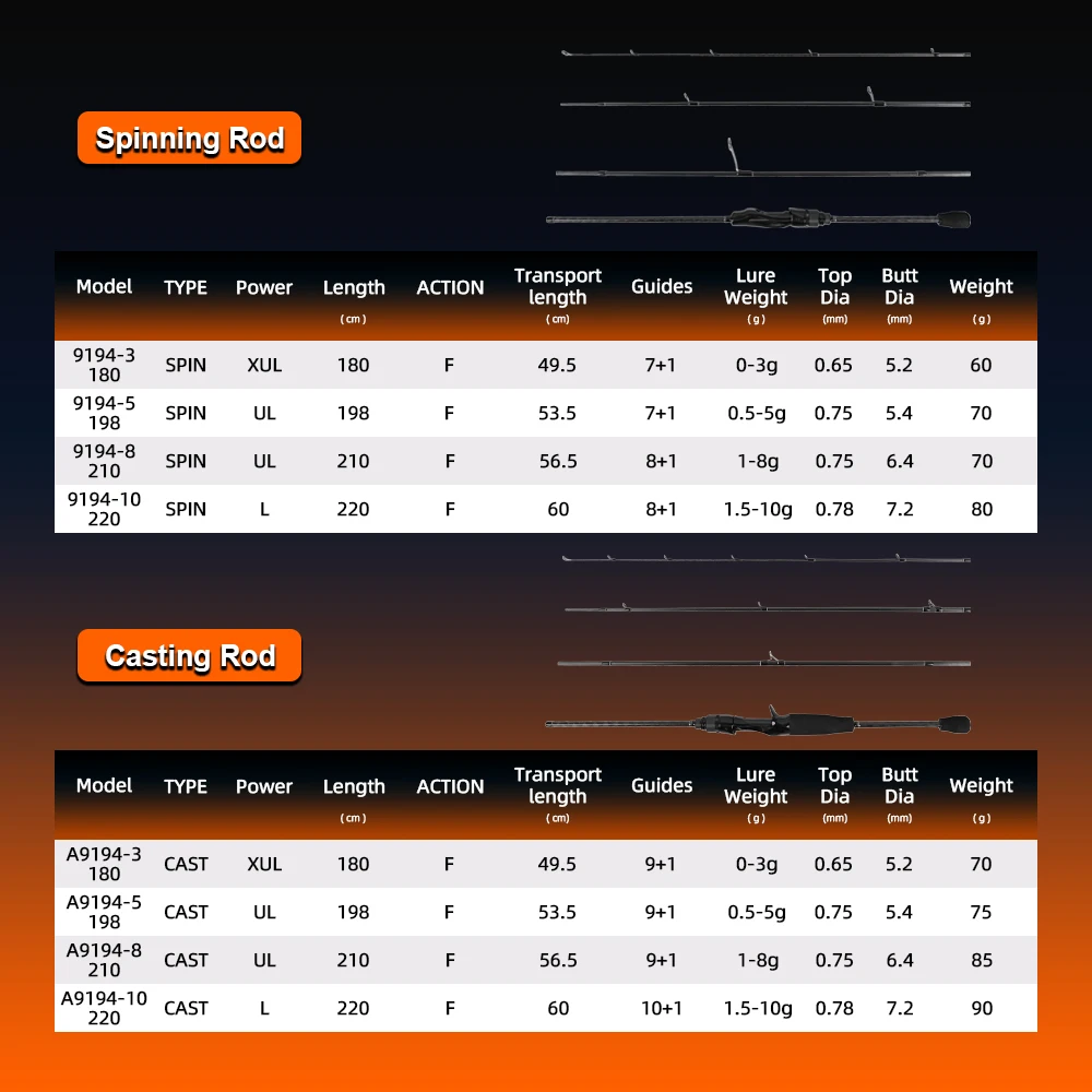 Mifine MICROBITE Spinning Casting Fishing Rod 40+46T Lure Weight 0-3g/0.5-5g XUL/UL Fast 4 Sections